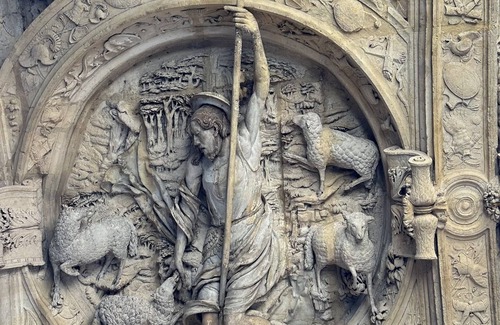 Well-lit path to entrance