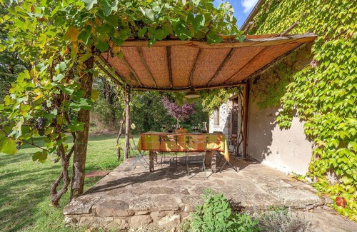 This former farmhouse near Anghiari (4 km) is now a cosy holiday home in a romantic hilly location surrounded by olive groves. On the ground floor, the central eat-in kitchen can be accessed from two sides; a short staircase leads to a tastefully furnished living room with an open fireplace; from the living room you can access all three bedrooms, each with its own bathroom. In front of the eat-in kitchen is a terrace with pergola and barbecue, where you can enjoy the evening sun. There is a private garden area in front of the seating area. The large natural plot on which the holiday home is located is shared with the owner, who lives in a separate house. In another outbuilding there is a large playroom where young guests in particular can have fun even on rainy days. The accommodation, a typical Tuscan holiday home, is ideal for relaxing, swimming in the nearby Tiber (3 km) and is located within a nature reserve from which a network of well-maintained paths for trekking and mountain biking starts (with the possibility of renting e-bikes). Anghiari is 4 km away and offers shops, bars, trattorias and a colourful market every Wednesday morning. Arezzo is 35 km away, Sansepolcro 10 km and the Franciscan monastery of La Verna 30 km.