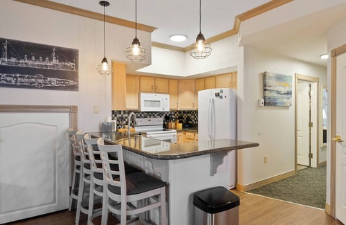 Unwind at this cozy 2BR/2BA condo just moments from Lake Michigan. Enjoy evenings by the gas fireplace, dine al fresco on the private patio, and explore nearby shops and restaurants. Fully stocked kitchen, comfy spaces, and local tips for watersport adventures. Managed with care by a local team—no waterpark access, but so much more to love. Your lakeside escape starts here!