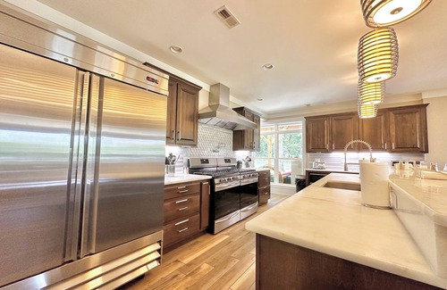 As a guest, you'll be delighted by the array of amenities that cater to your every need. Dive into the sparkling outdoor pool (seasonal) soak in the rejuvenating hot tub, eat s'mores by the campfire at the beach and watch AMAZING sunsets. Enjoy the convenience of a fully equipped kitchen, glorious coffee station, and outdoor kitchen with a propane grill (propane provided). Eat in the spacious dining area, on the huge back patio with tons of patio furniture & dining tables or on the oversized dock.