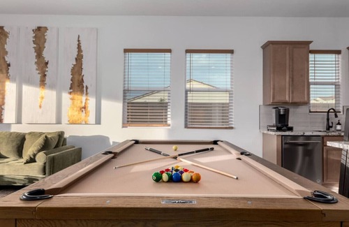 Kick back at this spacious 4BR getaway! Chill in a huge hot tub, heated pool (extra fee), or under a sunset-ready patio with/ fire pit & BBQ. Game night? The pool table’s ready. Den w/ smart TV, bunk beds for fams, lake fun, kayaking, trails & epic Estrella views. Tons of seating + pool floats.