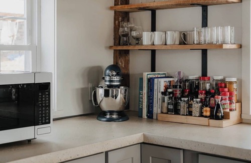 Fire up the grill outside and have dinner on the large outdoor dining table, and meander to the fire ring with lawn chairs and charming outdoor lights to light the way.