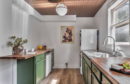 Enjoy the ease and elegance of two kitchens, each featuring brand-new, stainless steel appliances—perfect for preparing everything from casual breakfasts to gourmet dinners. The two full bathrooms include shower/tub combos, offering both comfort and flexibility for groups and families.