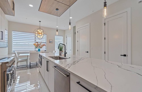 • Chef’s Kitchen: State-of-the-art appliances, sleek cabinetry, and a large island with seating, perfect for cooking and gatherings. Stocked with all the kitchen essentials you need for your stay.