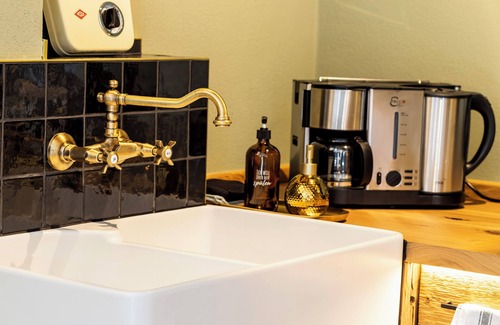 The flat is tastefully furnished with old wood, has modern technology and is equipped with everything you need for a relaxing stay. The cosy bedroom offers a comfortable bed for two people, while the living area has a sofa bed for possible additional guests.