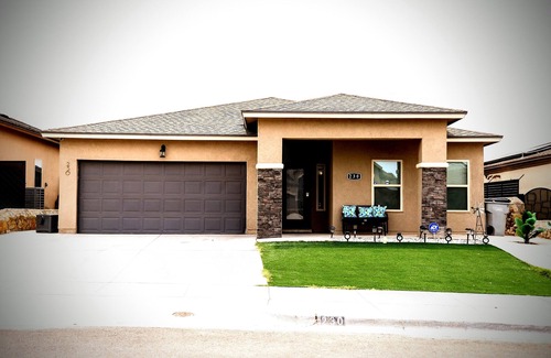 This wonderful house is 1900sqft located in West elpaso. in an up and coming neighborhood. it is also a very quiet and safe neighborhood. this property has a beautiful relaxing front and back yard with plenty of privacy. It is a 3 bed 2.5 bath home. this house can sleep up to 11 people at a time with one queen room with a built in office. one tri bunk room with one full and two twin beds. as well as one king room with a private bathroom. all rooms are equipped with Tvs , alarm clocks, and lamps.
