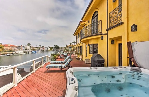 Indulge in a luxurious escape at this stunning 4-bedroom, 4-bathroom vacation rental in Oxnard. Spanning 4,491 square feet, the spacious home features a wraparound deck, private hot tub, fire pit, and breathtaking water views. Relax on the beach, explore Oxnard, Ventura, and Los Angeles, and end your days with unforgettable sunsets from the deck, creating cherished memories in this dream getaway.