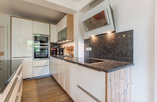 This very spacious and luxuriously furnished apartment is located on the ground floor of this beautiful complex in Zell am See just 750 m from the AreitXpress. Its location near the ski lift is ideal for winter sports enthusiasts. The high-quality finish and optimal layout with a spacious living room and luxurious kitchen and access to the very large private terrace with garden give you a feeling of freedom. Because of the bunk beds, this apartment is most suitable for 10 adults and 4 children