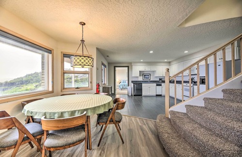 Newport's most popular large group vacation rental perched over the pristine Oregon coastline boasts unparalleled 180-degree ocean views of Yaquina Lighthouse and Beverly Beach. This 5,500-square-foot long-standing sleek vacation home was completely renovated in 2020. 2 fully equipped kitchens, a spacious open floor plan, a large bedroom suite with a soak tub and rain shower, a 70” smart TV, a hot tub with ocean views, and so much more highlight your luxe stay at this resort class residence.