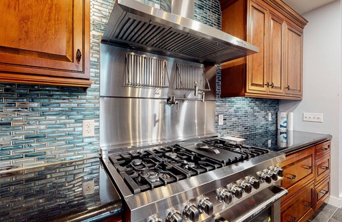 In the evening, grab one of the movie-theater-style reclining seats, get the floor-to-ceiling gas fireplace going, and host a family movie night in the living room. More entertainment options include a wet bar complete with a retro mini-fridge and popcorn machine, free high-speed WiFi, cable, five streaming-capable TVs, board games, a pool table, and an air hockey table. At the end of the night, tuck the kids into one of the fun bunk rooms and have one last soak in the hot tub - another perfect vacation day awaits tomorrow.
