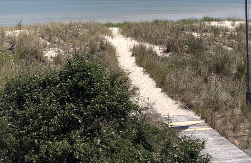This is an extraordinary home on a private beach (for homeowners and their guests). It has been professionally decorated and is a one-of-a-kind home. Every room has stunning views both to the Bay and the marsh behind it.
