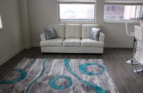 This condo features a nice quiet and spacious area. The living room is a nice size with a partial view of downtown Indianapolis. There is street and garage parking. The condo is near the famous Indiana state and sailors monument at the circle. It is also near many restaurants like Fogo de chow, Capital Grille, Prime 47, Panera bread, and Giordano’s and many more..