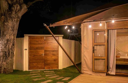 Live an incredible experience in our tent with 2 air-conditioned bedrooms on a 600 M2 garden with a private swimming pool of 6 x 10.