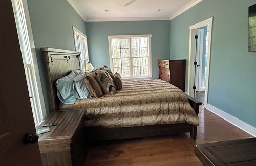 Custom Built Home in 2023 in the center of the Bourbon Trail in Kentucky. Enjoy the outdoors with hunting , fishing (fully stocked pond ) land is 50/50 split of woods and open fields. Hi The 2100 square ft cabin offers Three bedrooms and three bathrooms easily host 3 couples. Enjoy the 22 ft Ceilings, and Chalet Windows over looking the 3 acre pond (60ft deep). Property has a 740 Sq ft wrap around Porch, so you can see all of the beautiful views of the farm. The Property is 5 miles from the Bluegrass Parkway which allows easy and fast access to multiple distillery destinations. Numerous wildlife-deer, turkey, quail-you name it we have it. Also featured are numerous fruit trees and plants throughout the property. Pears, apples, and grapes! Each bedroom has a 55 inch tv , a 65 inch in the loft for gaming and a 75 inch in main living room. High speed internet 200mbs, allows you to work from the cabin and enjoy the land as a retreat from the office