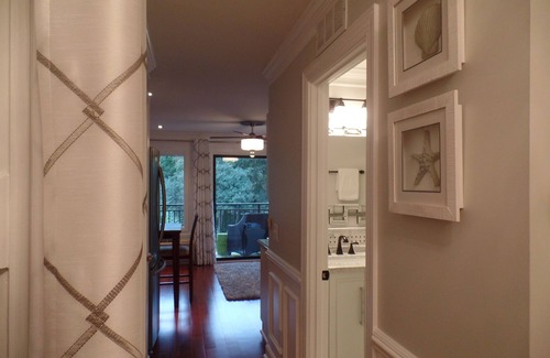The villa has wood floors, extensive low country style moldings, designer light fixtures including remote control ceiling fans and recessed lighting, carrera marble bathroom, granite counter tops, stainless steel appliances, custom draperies, beautiful mirrors and stylish furniture.