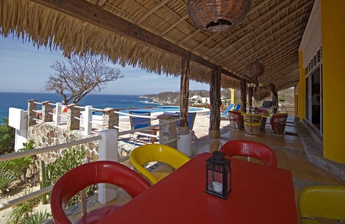 Located just 30 minutes from Huatulco International Airport is Salchi Bay and this private luxurious oceanfront villa with 3 spacious bedrooms all with ensuite bathrooms and air conditioning. MB has a King size bed and both guest rooms have 2 queen size beds each. The stunning vista can be enjoyed from every room of this designer-decorated villa. Relax on the sundeck beside the private beautiful infinity pool, or walk 2 minutes to the stunning beach. The Villa is complete with large screen smartTV, surround sound, DVD, Satellite programming, and Wireless Internet. The kitchen is fully equipped with every appliance and utensils. Huatulco has many fine restaurants, great shopping, a Market, and Movie Theatres. Available Tours for Deep sea fishing; kayaking; whitewater rafting; ATV rental; horseback riding. This is a fantastic Villa for family reunions, weddings, or romantic getaways.