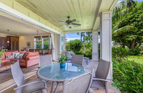 Luxurious and spacious (1600+ sqft) 3 bedroom 3 full bathroom villa with central A/C (rare in Poipu), fully-stocked gourmet kitchen and folding glass doors that open to a private lanai with lush views of the Po'ipu Greenbelt. Walk to world-famous beaches, dining and the Grand Hyatt, or relax poolside at our private resort-style pool that is only available to guests of the complex. Perfectly outfitted for families and friends to experience the best of Kauai.