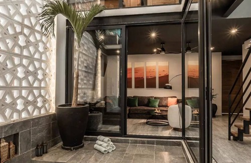 Welcome to Nocturna Sahara, a custom-designed villa made of 2 adjoining townhouses w/ 4 private plunge pools, 8 bedrooms, 2 kitchens, 2 rooftop bars, & beautiful rooftop lounges with fire pits overlooking Tulum National Park.