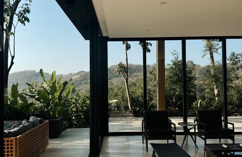 This special villa is located on a hill very close to the beach and the surf spot of Playa Hermosa.