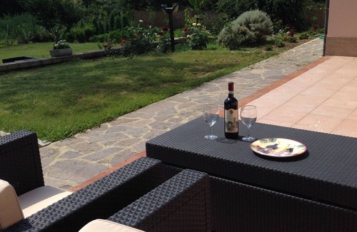 Our Villa is in the Tuscan countryside of Sarteano. It is very private and tranquil. House has been renovated and decorated with modern comforts. Villa has a comfortable Living Room with Leather Couch, 42" Flat Screen TV, Air Conditioning, and great working WIFI. Kitchen is fully prepared for our Guests who wish to cook some meals, and includes pots, dishes, wine glasses, spices and olive oil. The Kitchen also has a dining table. The Spacious Bedroom has new comfortable Mattress, Large Armoire and Dresser. The Bathroom has been updated and has a new comfortable Shower. Private Patio has seating area and an outdoor dining table with chairs. There is also a grill for our guests. Our Guests can enjoy having some wine from this area, while watching some amazing sunsets. Property is completely fenced in and has plenty of parking right next to Villa right on the property.