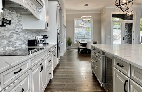 The “man-cave”, attached to the exterior garage (which sits at the top of the property), includes a full-sized queen murphy bed, sleeper sofa, 3-in-1 multifunction game table including a pool and ping pong tabletop, TV, and bar area. The man-cave also has quick sliding door access to an outdoor fire pit with a breath-taking hilltop view, allowing you to see miles of the lake while roasting marshmallows and cooking hot dogs! Please note that the man-cave can be accessed 365 days of the year, but will be winterized from November-April prohibiting the use of the bathroom.