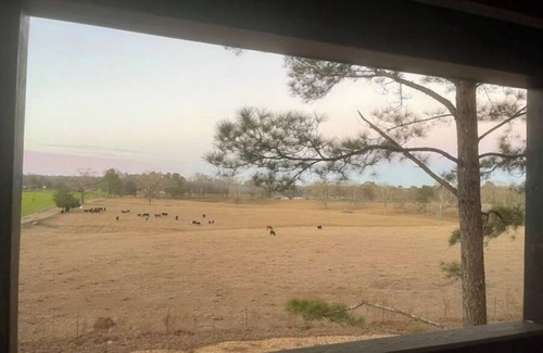This unique place has a style of its own. Great views of pastures, woods, and a pond. The cabin located 18ft off of the ground sits on 54 acres.