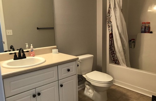 Home is less than 2 miles from I-20, 17 miles from the Masters, and is located next to Sage Valley golf course. This is a 4 Bedroom/3.5 Bath home. Main level has Large Master Suite with bathtub and standup shower as well as a 1/2 bath. Upstairs consist of 3 bedrooms and 2 full bathrooms along with a loft. Loft area and each bedroom is equipped with a TV. Living room features an 82" Samsung TV. Open concept eat-in kitchen that seats 6 guest at the table with additional 3 guest at bar. Kitchen features an over sized corner pantry.