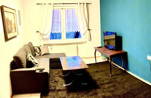 Layout: Kitchen(microwave), Living/diningroom(Sofa, TV, dining table), bedroom(Bed Linen, Wardrobe, double bed), bathroom, parking (paying)