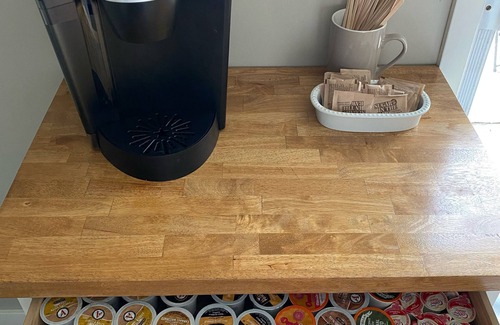 Kitchen: fully equipped, appliances, toaster,microwave, crockpot, magic bullet, Keurig coffee maker with coffee,cream, and hot chocolate. 6person dining table