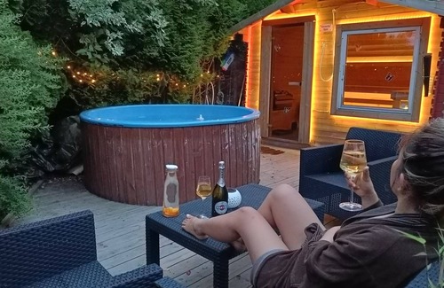 Cozy apartment near Sandefjord centrum and airport. Features outdoor spa with hot tub, sauna and shower! 3 bedrooms for total of 8 guests. Me and my son Olav lives in the basement apartment of the house and always ready to help 😊🏡