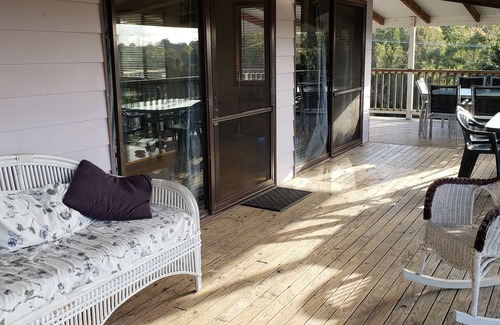 With 4 bedrooms and 2 bathrooms ( 1 ensuite), it's the perfect getaway for one or two families in an eco-friendly atmosphere. Enjoy the rural harmony of the birds singing, the active kangaroo life and the magnificent sunsets over the lake from the fabulous wrap around entertaining deck, stay cool in summer on the shaded downstairs paved area or nestle by the wood fire stove with a spine-chilling best seller in the cooler seasons. Minimbah has all the key ingredients for a relaxing holiday.