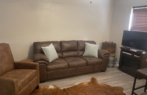 Nestled in the heart of Maggie Valley, this charming 1-bedroom cottage offers the perfect escape for your next vacation. As you step inside, you'll be greeted by a cozy living room, where you can curl up by the fireplace and enjoy the smart TV. The fully stocked kitchen is equipped with all the essentials, including a stove, oven, refrigerator, grill, microwave, coffee maker, and toaster, allowing you to prepare delicious meals during your stay. Step outside to relax on the outdoor furniture and take in the peaceful surroundings.