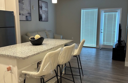 Modern 1 bedroom apt w/pool minutes from tons of attractions and MCI airport is located in Waldron. Modern 1 bedroom apt w/pool minutes from tons of attractions and MCI airport provides accommodation, featuring TV, Balcony/Terrace, Sports/Activities, among other amenities. This Apartment features TV, Balcony/Terrace, Sports/Activities, to make your stay a comfortable one.