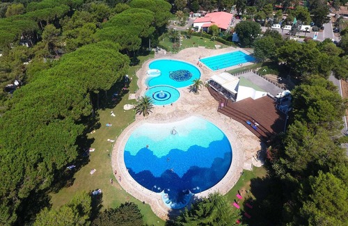 Escape to this modern 3-bedroom, 2-bathroom chalet tucked away in the tranquil shade of pine trees at Baia Domizia Camping Village. Perfect for families or small groups, the home is thoughtfully designed with a private veranda, garden furniture, and sun loungers—ideal for relaxing after a sun-soaked day. Inside, enjoy a spacious layout with satellite TV, a well-equipped kitchenette, and refreshing air conditioning (available for a fee). With private parking and resort-style amenities, everything you need for a carefree stay is right here. Whether you're in the mood for adventure or rest, the campsite has it all. Lounge by the large pool with panoramic sea views, join activities with the entertainment team, or unwind at the private beach stretching over a kilometer. Kids will love the mini club and playground, while adults can stay active at the gym or on the sports fields. A small shopping center ensures everyday essentials and souvenirs are close at hand. Take day trips to the legendary sites of Pompeii and Naples, or set sail to the picturesque islands of Ponza, Ischia, and Capri. In the evenings, enjoy authentic Italian flavors at nearby restaurants serving Campanian specialties—think wood-fired pizzas, fresh seafood, and local wines. Please note: pets are not allowed, ensuring a peaceful, allergen-free environment for all guests.