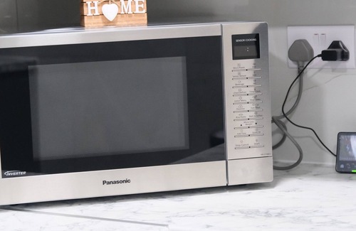 The kitchen has a fridge, a hob, an oven, a kettle, a freezer and a microwave.