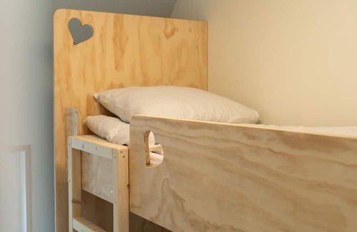 Layout: Ground floor: (open kitchen(electric kettle, coffee machine, combination microwave, dishwasher, fridge), Living/diningroom(TV), bedroom(double bed or 2 single beds), bedroom(2x single bed), Children's bedroom(bunk bed), bathroom(shower, toilet)) heating(floor heating), terrace, parking