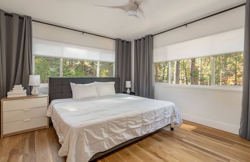 Enjoy your next Sierra getaway at Mokelumne Mountain House! This cabin has been recently completely remodeled and boasts a sleek and modern design with lots of natural light, creating a haven of comfort and tranquility. The open-concept floor plan is perfect for your family and friends to make lasting memories! This cabin boasts 4 bedrooms and 4 full bathrooms with 1600+ square feet of living space. The main living spaces (great room, dining area, fully equipped kitchen, bedrooms and bathrooms) are all on the upper level, while the downstairs features a large bonus/rec room for recreation and relaxation. Enjoy the refreshing mountain air and al fresco dining from the expansive deck - there’s also a gas fire pit to gather around on crisp evenings! Stay comfortable year-round with forced air gas heat, air conditioning, and a cozy gas log stove in the great room. Convenience is key during your stay, and this cabin offers ample parking space for multiple vehicles. We understand that pets are part of the family, and this cabin allows you to bring your furry friends along for the adventure. Explore the nearby hiking trails and let your pets revel in the great outdoors with you! Experience all our area has to offer including Big Trees State Park, Bear Valley Ski Resort, Lake Alpine, White Pines Lake, Arnold Rim Trail, and the charming town of Murphys, all in close proximity. Book your stay at Mokelumne Mountain House - the perfect blend of modern luxury and natural beauty. Your mountain retreat awaits!