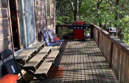 Family cottage on scenic East Bay, Location, 230 Ft. lakefront with, boathouse and dock for swimming. Beautiful sunset views, Kayak, Canoe, and Hike trails. Close to Hardy Lake and secluded Islands. Kitchen includes, fridge, stove, microwave, Office Water Jug.. br, 2 up Queen and Full, 1 main level br. 2 single beds, 2 Baths 1 up & 1 main level, shower and Jet Tub. Split lower level Sofa & 2 love seats. Dining and Living area, Washer & dryer, Dishwasher, CD player, DVD to TV, Bird feeders, Private drive with turnaround, Power Boat rentals at various Marinas nearby. Boat slip available in boathouse, Scenic view, Microwave, Toaster, Coffee maker, Electric tea kettle, Dock and decks, Canoe, Shallow & deep water, Front window views of the lake, Wi Fi available, Table games and puzzles, beach toys, Quiet bay, Fishing, Midway deck, BBQ grill on deck with Tables and chairs, Surrounded by variety of trees for shade, Sunset view with southwest exposure, life jackets. Floral settings. Hikers & Kayaks Paradise.