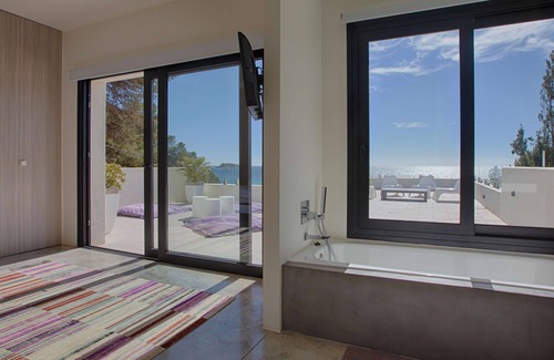 1 double master bedroom with double bed (180x200) with bathroom en suite with double sink, toilet, bath with spectacular sea views and shower. TV. Access to large upper terrace. Spectacular views of the Mediterranean Sea.