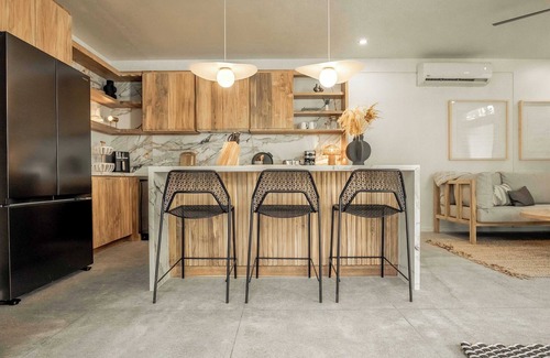 Namaste Oasis by FŌKL is a private sanctuary of four luxury 2BR, 2BA residences in Nosara’s coveted K Section. Sleeping up to 20 guests, it’s minutes from the beach, Bodhi Tree, and top wellness studios. Set behind a secure gate and surrounded by jungle, the property features a shared pool, expansive outdoor areas, and design-forward interiors—ideal for yoga retreats, surf camps, reunions, family escapes, and intimate group gatherings.