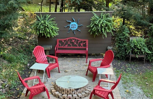 Escape to a natural oasis right in your backyard. Our outdoor space boasts a gas BBQ grill, cozy fire pit, porch with comfortable outdoor furniture, and a beautiful deck area surrounded by nature. Breathe in the fresh air as you cook up delicious meals and gather around the fire with loved ones. With its serene surroundings and top-of-the-line amenities, our backyard space is the perfect place to connect with nature.