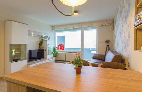Here you live in the 7th Floor of the Haus Nautic, with a spectacular view of the world shipping route and only 50m from the green beach of Grimmershörnbucht. The modern apartment has free WiFi, a separate bedroom, also with a balcony and sea view. Living room with luxury sofa bed (cold foam mattress with 180x200 cm lying area) LED TV and radio. Open kitchen with dining table and oven. As well as a spacious shower room. Parking space directly at the house. Of course, the swimming pool and sauna in Haus Nautic can be used free of charge.