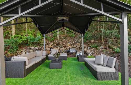 • Outdoor gazebos with seating, gas grills, and patio heaters