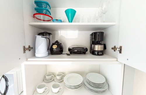 - cooktop, fridge, microwave, sandwich maker, blender and mixer