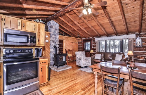Immerse yourself in nature's symphony as you hike winding trails, spotting deer and turkey and the occasional bear along the way. Retreat to the warmth of the cabin, its rustic charm enhanced by modern comforts. With new mattresses, linens and furniture, you’ll enjoy the sweetest dreams after you day of fun on the lake. Cozy up around the wood stove or unwind on the spacious deck, where the scent of pine mingles with the crisp air.