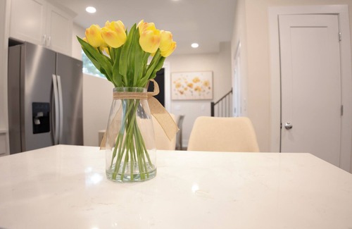 Welcome to our charming two-bedroom, two-bathroom house, the perfect retreat for your getaway! This modern home features a spacious and open living area with a cozy electric fireplace, fully equipped kitchen & dining room, and comfortable bedrooms designed for relaxation. Each bathroom offers modern amenities for your convenience. Step outside to the stunning rooftop deck, where you can unwind with panoramic views, enjoy a meal under the stars, or simply relax in the fresh air. Whether you’re here for a short stay or an extended trip, this inviting space is ideal for couples, small families, or friends looking for a peaceful escape with a touch of luxury while enjoying your stay in Durham.