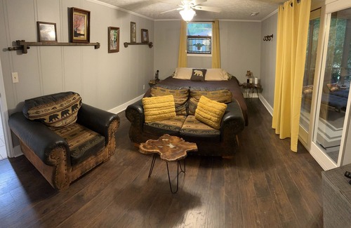 The nights are getting colder, the leaves are starting to change. Cozy up to your gas firepit, make s’mores and have some hot chocolate. The Guest Suite has a private entrance, is uniquely decorated with antiques, fully equipped kitchen, private screened patio with lounges to watch the wildlife, golfers on the golf course and view the mountains. There is also a private backyard with a fire pit. The Guest Suite is centrally located to Apple Orchards, Wineries, restaurants, Jasper and Ellijay.