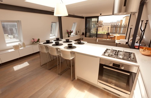 This beautiful, stylish, architect designed 3 bedroom duplex apartment has just been completed and will offer you a memorable stay in one of the nicest areas of London. The apartment has its own street level entrance and a lovely terrace on the upper floor and has a feel of a house. It is laid out on two floors with bedrooms being on the first and a stunning open plan kitchen/dining/living room opening full width on to a terrace on the second floor. Master bedroom has a luxury en suite shower room and in addition there are 2 more bedrooms, a family bathroom and a guest toilet/utility room. Everything in the apartment is brand new including fixtures and fittings, wooden floors, appliances, light fittings, furniture, etc.