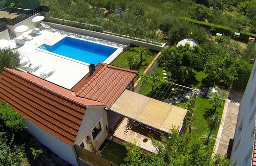 This beautiful holiday home is located in the Split neighborhood Sine, away from city noise and stress. It consists of two apartments with separate entrances, on two floors connected trough an intern stairway. Large fenced plot consists of terraced terrain on which are situated the garden, children's facilities, and an attractive swimming pool surrounded by olive trees, which contributes to an authentic Dalmatian atmosphere. There is an adjoining kitchen with associated toilet, dining area and barbecue. Everything has been designed for hedonistic holiday with loved ones. Enjoy a walk through the narrow stone streets of Split and mystical halls of Diocletian's Palace. Taste the Dalmatian specialties and wines in local taverns. House owner lives on the property, and ready to help, if needed.