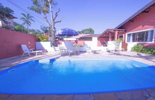 Beautiful house with 4 suites for 10 guests. Air conditioner and great internet throughout the house. Large room with 3 rooms. Full American kitchen, Two smart TVs with access to all channels. Large lawn backyard, manicured gardens and parking for 4 vehicles. Private pool of 3X6m all fenced in. The house has 2 balconies, the largest of 50 m², with barbecue, hammocks, and ample table for outdoor dining. Dogs are welcome with a hosting fee of 250 reais per stay for up to 2 pets .